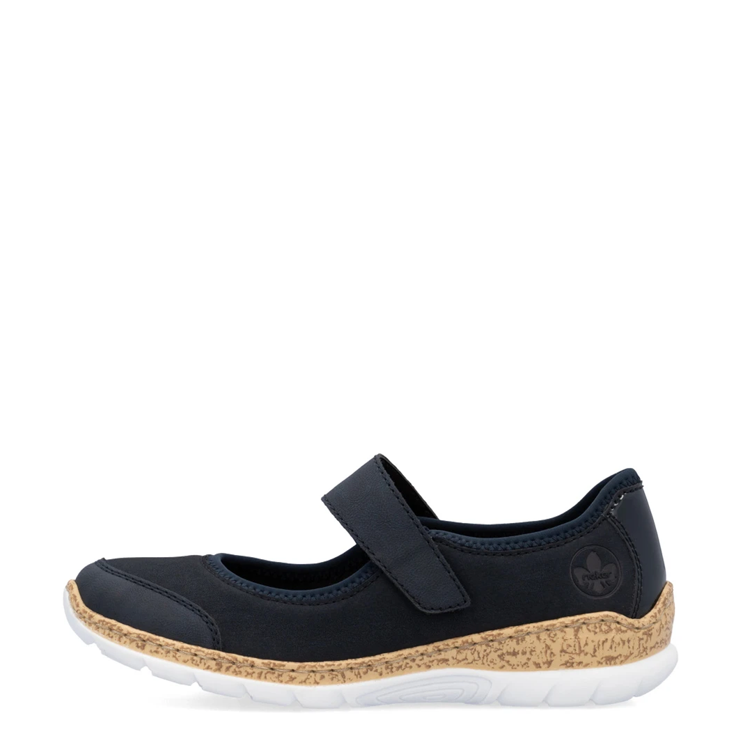 Priuštite svojim nogama maksimalnu udobnost uz ove elegantne Rieker baletanke. Tamno plavi gornji deo obuće dodatno je ukrašen sjajnim detaljem na peti i logom brenda, što im daje moderan i stilizovan izgled. Kaiš preko risa sa čičak trakom omogućava lako obuvanje i prilagođavanje prema vašim potrebama.